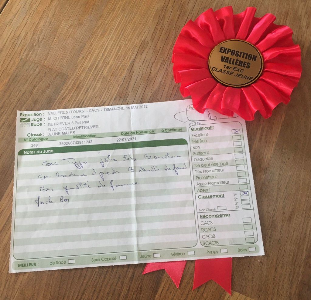 Bonne construction, Excellente Ossature, Bonne proportion en tête, Bonne encolure attache de fouet, Bonne qualité et densité de fourrure Exc mouvement